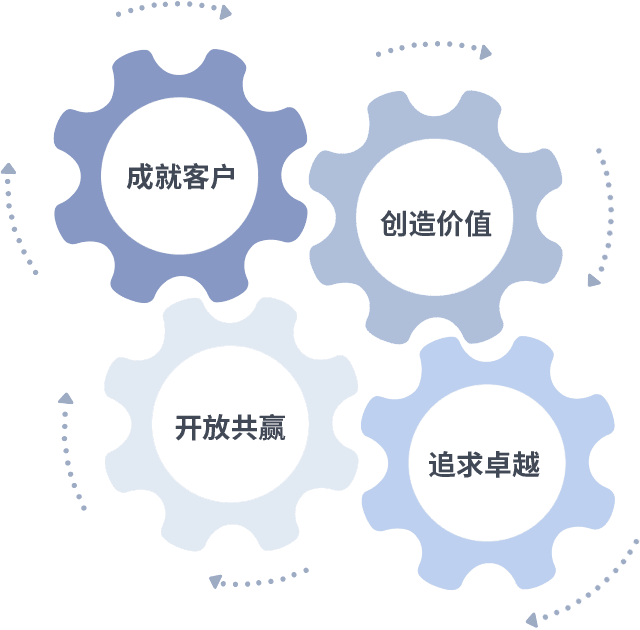 成就客户是一切决策的出发点,,,,创造价值是衡量所有工作的标准,,,追求卓越是尊龙凯时人生就博做事做人的态度,,,,开放共赢是尊龙凯时人生就博的格局也是最终的结果。。。。价值观的齿轮环环相扣,,推动着组织里的每个人不断向前。。
